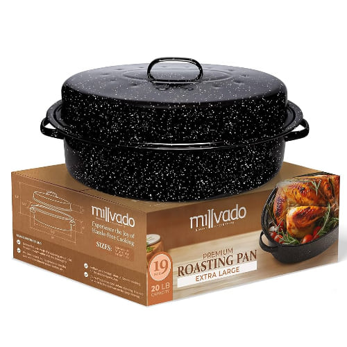 Millvado’s specialty items, such as roasting pans with lids and stainless steel kitchen utensil sets, bring versatility and functionality to your cooking tasks, making meal prep a seamless process.